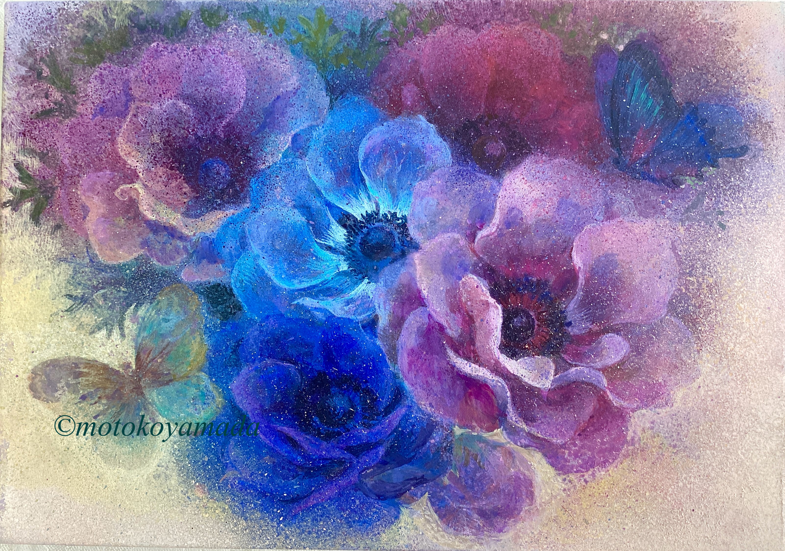 春の夜に怪しく官能的に香り立つアネモネ。それに群がる蝶々たち。、そんな早春の月夜の世界を描いた作品です。