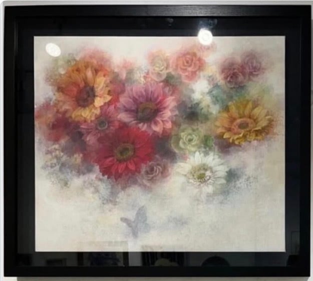 荘子が夢の中で蝶になってヒラヒラと舞っている自分が、人間であるのか蝶であるのが本当の自分なのか、わからなくなったと言う話をイメージした作品。